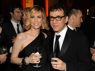 It's Parns (Chris Parnell) birthday tomorrow!! So to celebrate we're all going to watch a rousing episode of SNL together! Just kidding during the day we're going out to lunch and then we're (when I say we're I mean a lot of the old cast, myself Kristen, Seth, Bill, Andy, Jason and Fred) having a super awesome-er after show cast party for him.Tomorrow is also the Comedy Sportz team and I are going to Gamecon in Oswego, New York from 8AM-4PM (just in time to make it back for Chris's birthday thing...) which is really exciting because that means I get to improv with people I've never met before! Yay...the picture of the day is of Kristen and Fred at the VMAs. Fred is the only one who cared to look at me...thanks FRED.